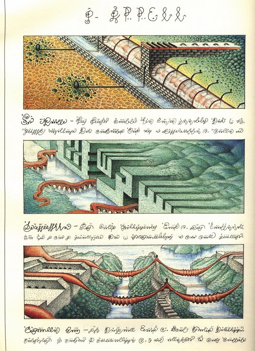 Сам автор признается, что это окутанное загадками творение — энциклопедия воображаемого мира. Есть мнение, что речь идет о параллельных мирах.
