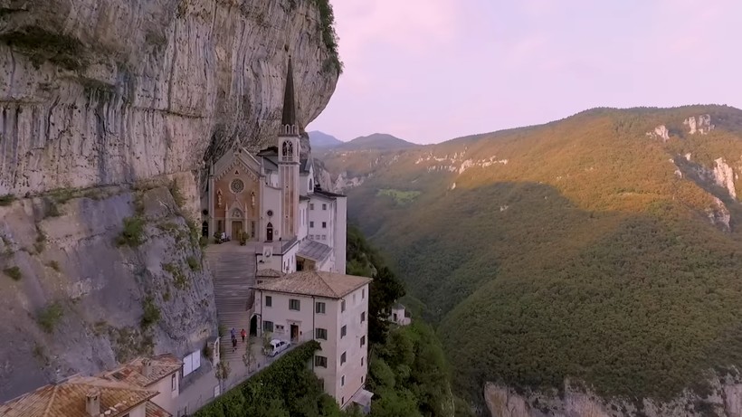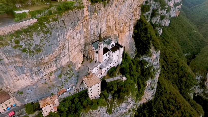 В мире еще много неисследованных достопримечательностей: поток туристов в такие места довольно мал из-за их непопулярности или удаленности от больших городов и известных точек туризма. Итальянская церковь в видео, представленном ниже, является как раз такой достопримечательностью, построенной на отвесной скале.