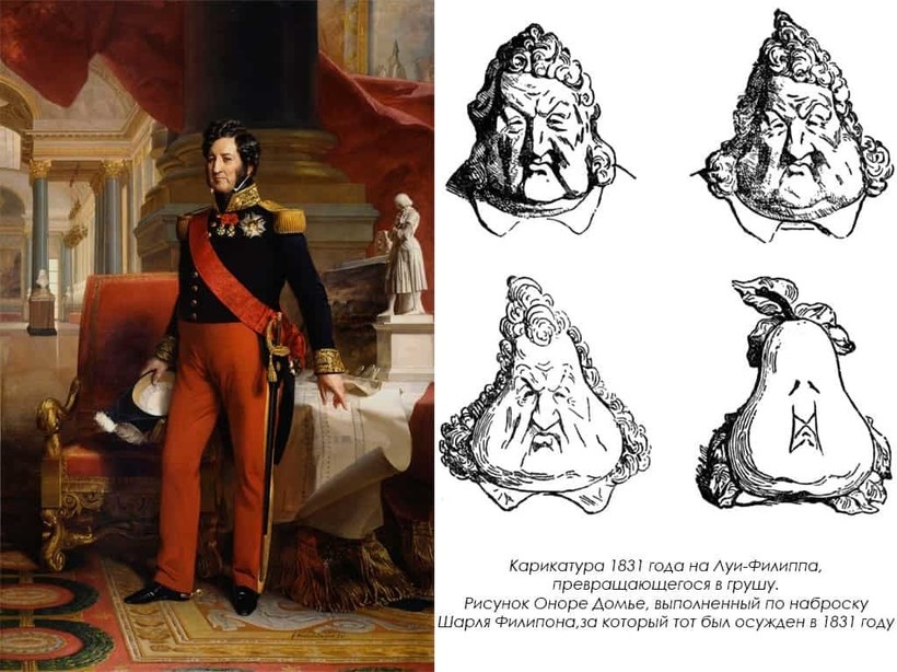 Своего короля Луи-Филиппа Орлеанского французы прозвали «королем-грушей». Причем сначала они относились к монарху хорошо. Населению нравилось, что их король, как и весь простой народ, ходил по парижским улицам, его дети учились в общественных школах.Но через некоторое время до них стало доходить, что Луи склочный лицемер. Его лицо расплылось и все больше напоминало по форме груши.