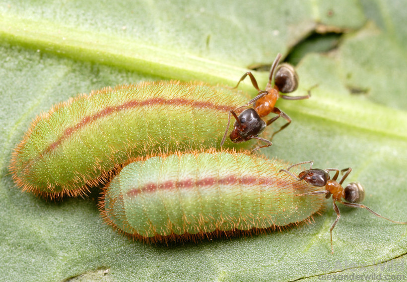 Кроме того, довольно странные отношения существуют между некоторыми видами муравьев и многими бабочками из семейства голубянок, насчитывающего более 5000 видов. Гусеницы этих бабочек практикуют так называемую мирмекофилию, когда часть их жизни проходит внутри муравейника. Но как гусеницы, являющиеся излюбленной пищей муравьев, умудряются попасть в муравейник, да еще и выжить там? Оказывается, муравьи сами приносят их туда, причем с большой радостью. Все дело в химических запахах, которые способны издавать гусеницы голубянок. Пахнущие как личинки муравьев, эти гусеницы, несмотря на явные внешние отличия, совершенно сбивают с толку рабочих муравьев. Пьянящий аромат лишает муравьев способности трезво оценивать ситуацию, и они бережно несут гусеницу в свое жилище. Ну а дальше все происходит как при обычном паразитизме: муравьи кормят гусеницу, которая растет, развивается и в итоге начинает поедать личинок и куколок самих муравьев. Помимо приятного для муравьев аромата, гусеница выделяет сахаристую жидкость, которую муравьи с радостью поедают, приходя в полный восторг от новой обитательницы муравейника. Поскольку коварная гусеница продолжает издавать пленительный аромат и выделяет вкусную жидкость, столь приятную для муравьев, то они прощают ей даже то, что она поглощает будущее потомство. Эти необычные отношения зашли так далеко, что гусеницы голубянок утратили способность развиваться самостоятельно, без помощи муравьев, питающих слабость к сладостям и приятным ароматам.