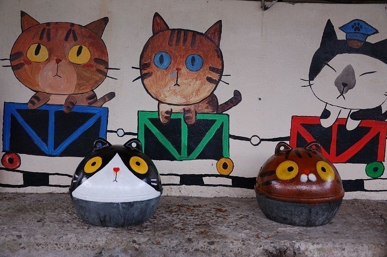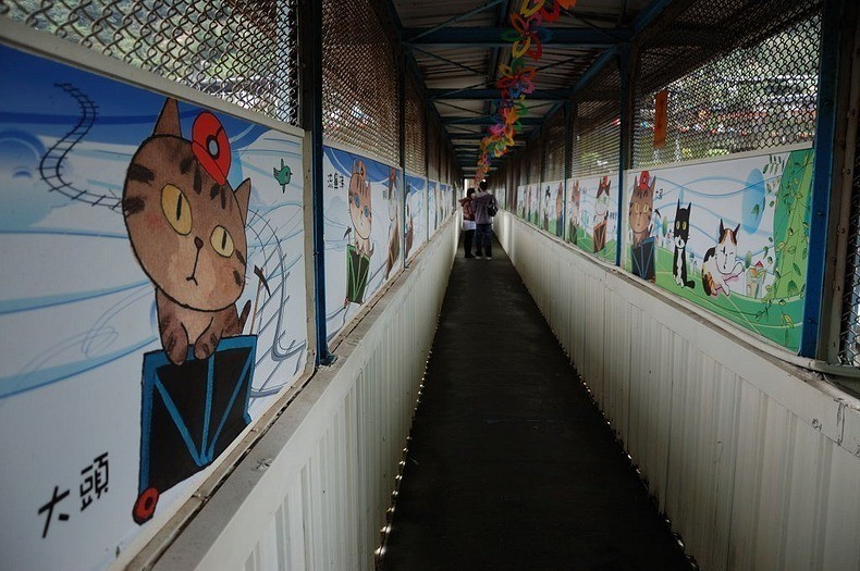 Коты изображены на каждом углу, а пешеходный мост, который был построен несколько десятилетий назад, тоже стал с «кошачьим» характером: на одном его конце появились уши, а на другом — хвост. А еще к нему пристроили небольшой подиум, где коты безумно любят греться на солнышке и словно приветствуют гостей, которые приезжают в Хоутонг на поезде.