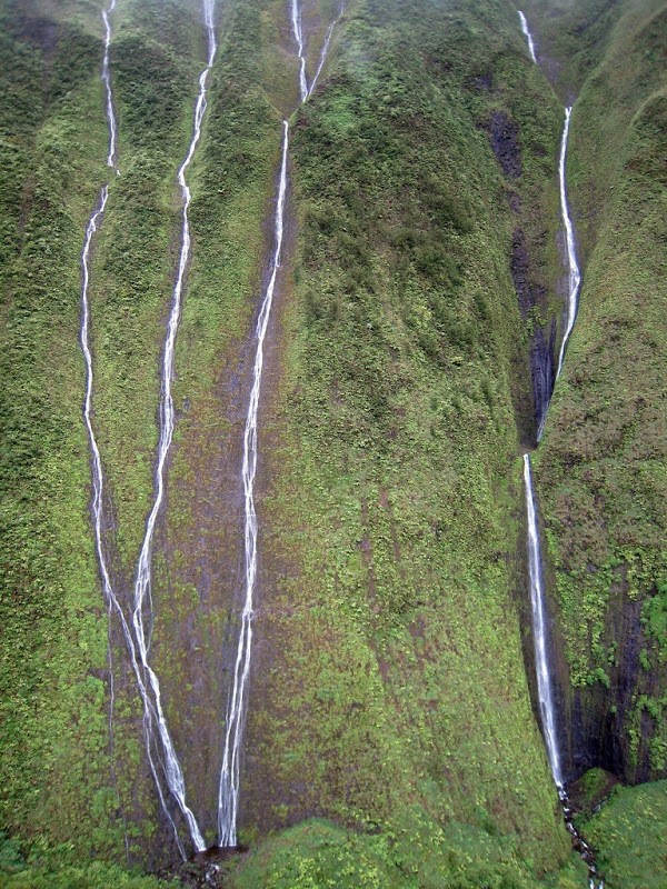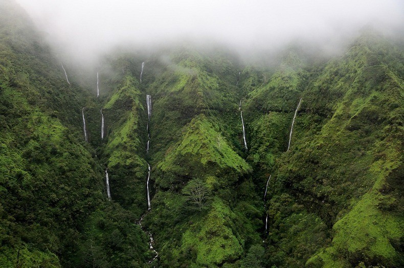 И когда влажный воздух превращается в воду, он не оседает на горе, а спускается с нее бесчисленными потоками. По глубоким склонам Ваиалеале бегут десятки тонких водопадов, из-за чего создается впечатление, будто гора постоянно плачет. Именно из-за этого один из склонов прозвали Стеной слез.