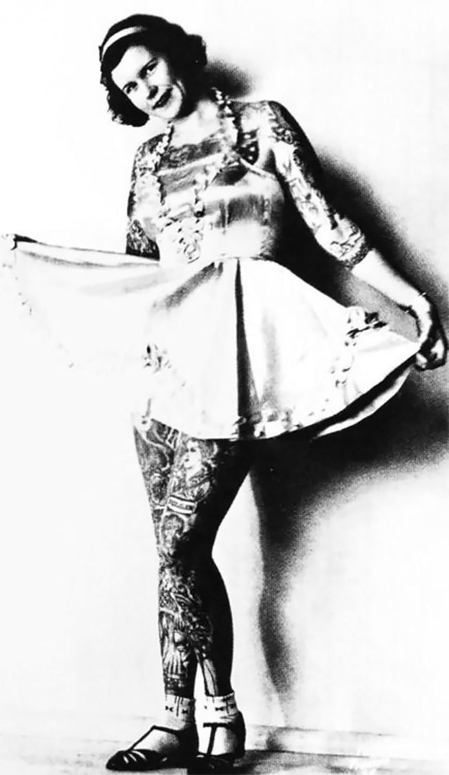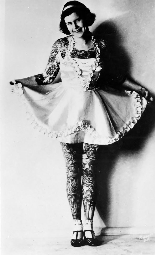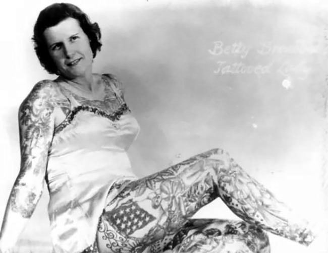 К 1927 году татуировки покрывали уже все тело Бетти. Она выступала в известном цирке, а также принимала участие в гонках с Томом Миксом. Энтузиазму Бродбент можно только позавидовать, ведь она, наряду с этими занятиями, изучала торговлю и сама прослыла довольно успешной татуировщицей.