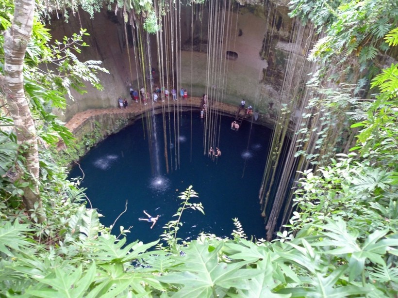 Красивейшее карстовое озеро Ик Киль раньше было священным сенотом древней цивилизации майя. Его название переводится, как «место, где рождается ветер». Оно окружено высокими 25-метровыми стенами, а его воды простираются вниз на 50 метров.