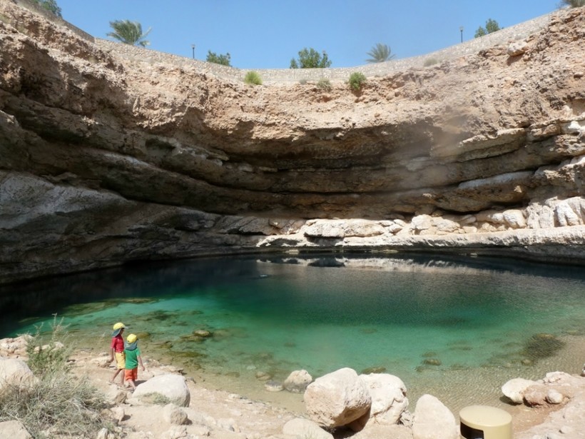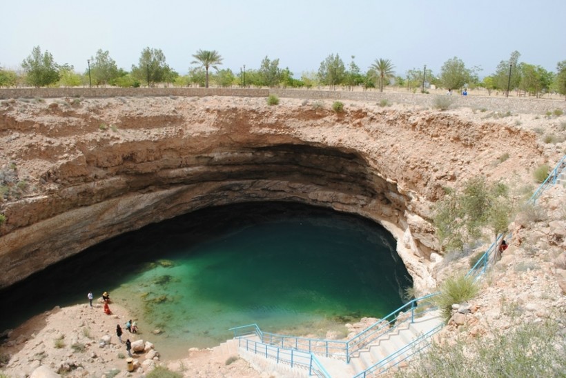 Необычайно красивый колодец Бима находится всего в 500 метрах от моря. Он соединяется с ним скрытой от глаз подводной пещерой, поэтому вода в этом провале такая же соленая, прозрачная и сине-зеленая.