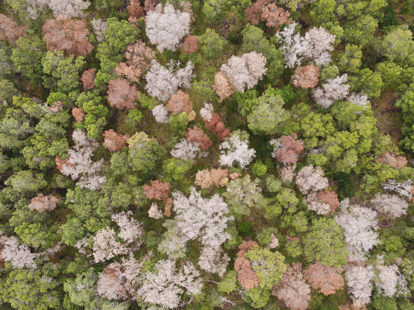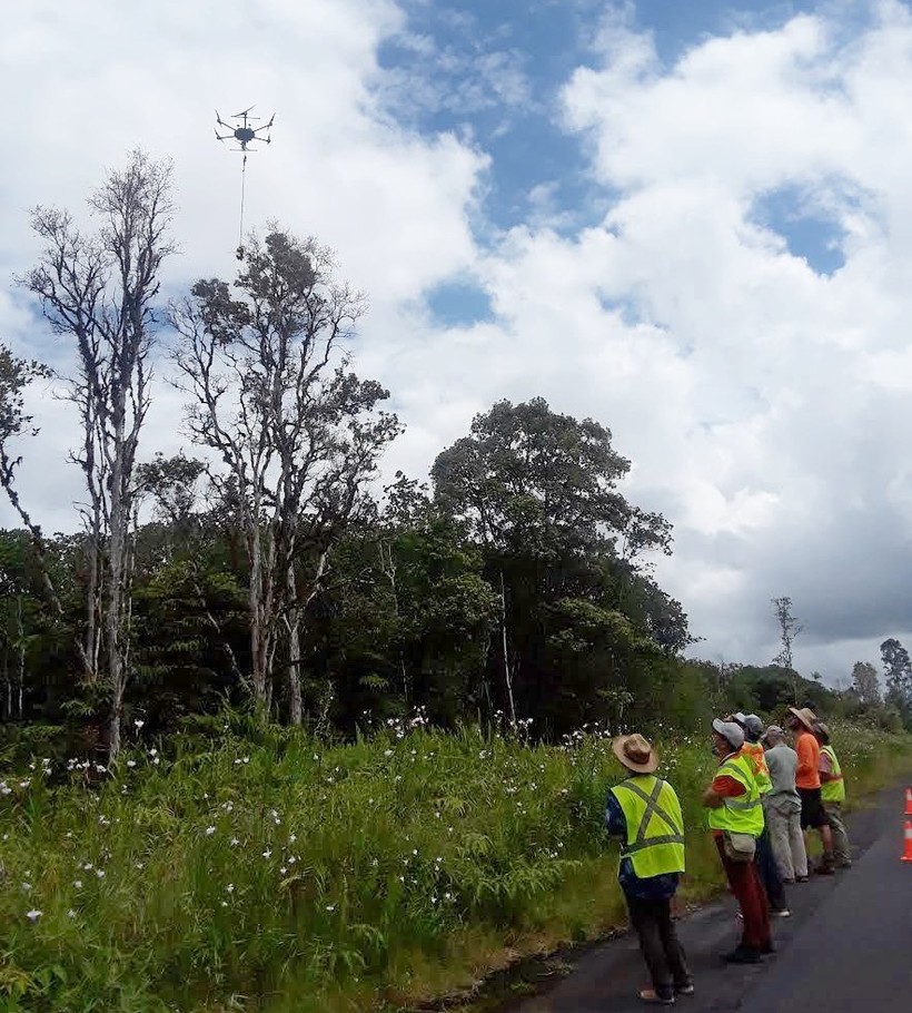 Но ученые не сдаются, а им на помощь приходят дроны. Летающие научные сотрудники помогают биологам не только вести мониторинг ситуации и выявлять новые зараженные деревья. Дроны оснащены специальным оборудованием, позволяющем взять образец дерева для анализа. Дроны ежедневно делают тысячи фотографий, при помощи которых ученые составляют карты гавайских лесов с целью выяснения новых очагов поражения охии.