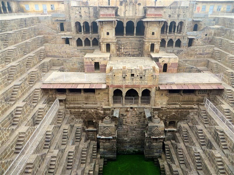 Все колодцы по своим размерам отличаются, ведь в разных районах страны грунтовые воды пролегали на разной глубине. Но многие из них поражают своей мощью: они вполне могут вместить современный десятиэтажный дом. Только представьте весь масштаб строительства: большинству из баоли больше тысячи лет, строили их вручную. По всей Индии их насчитываются сотни, и всеми ими активно пользовались. В засушливый период, чтобы достичь воды, необходимо было проделать длинный путь вниз, а во время муссонных дождей, которые лили неделями, колодцы превращались в цистерны, наполняясь водой практически до краев.