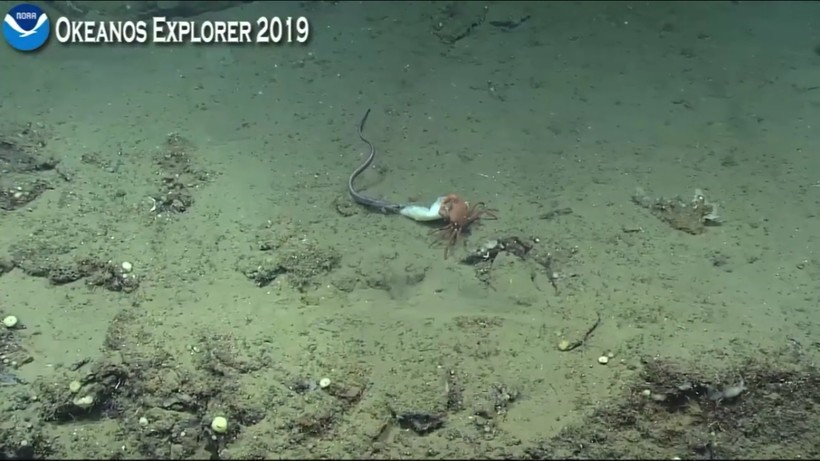 В этом видео краб мужественно защищает свой обед от назойливых угрей, которые решили воспользоваться моментом и украсть добычу. Но маленький хищник просто так не отдал захватчикам свою еду.