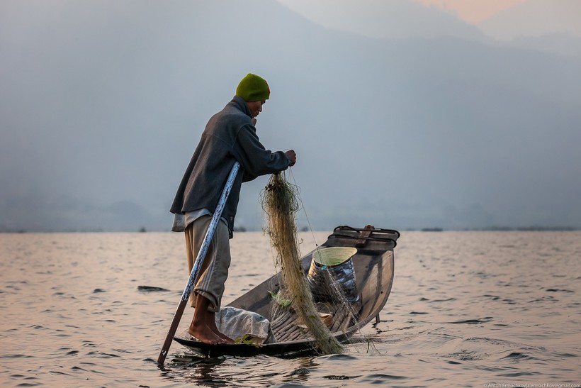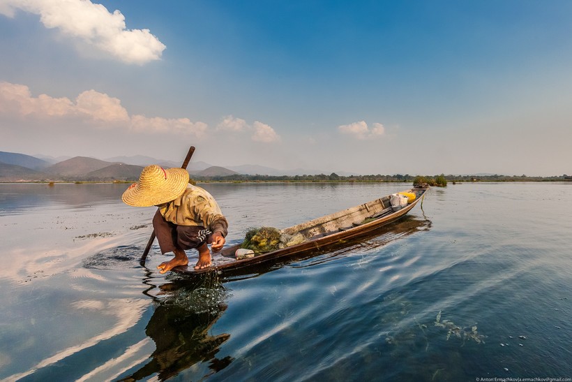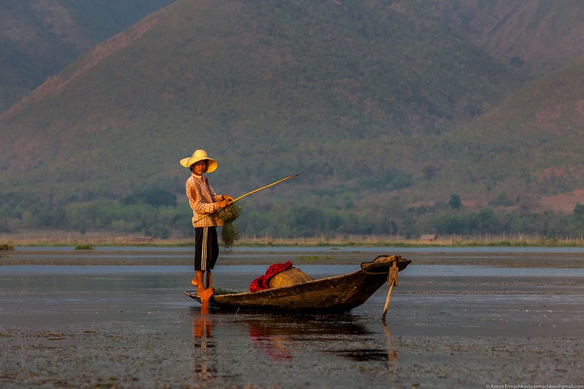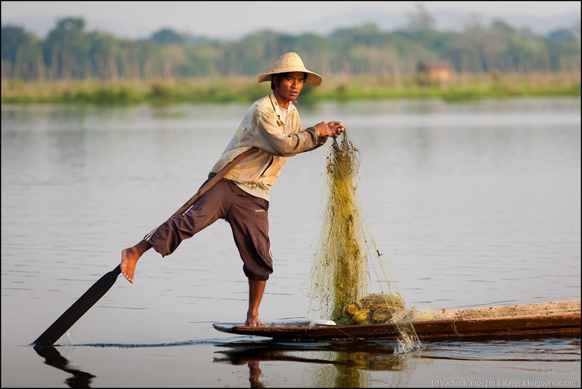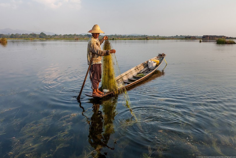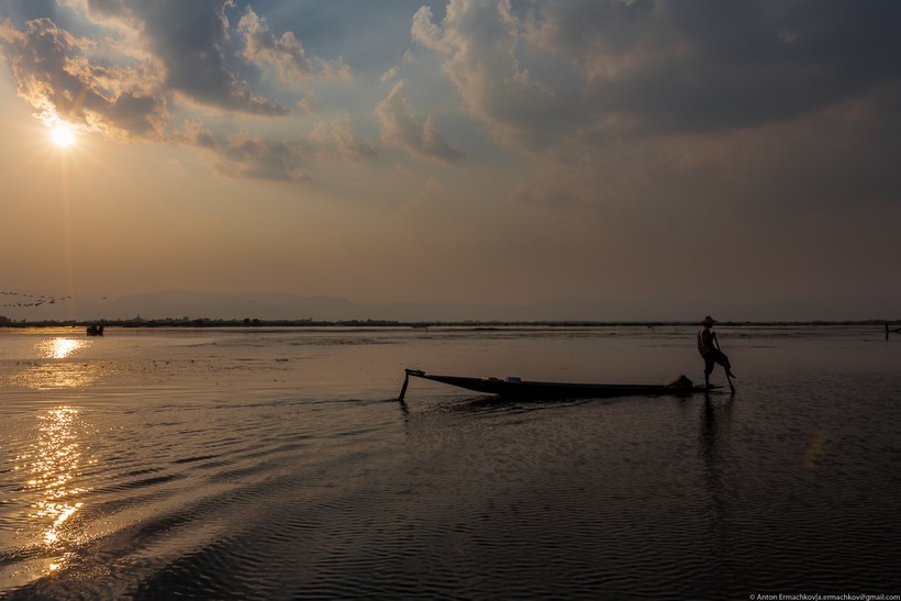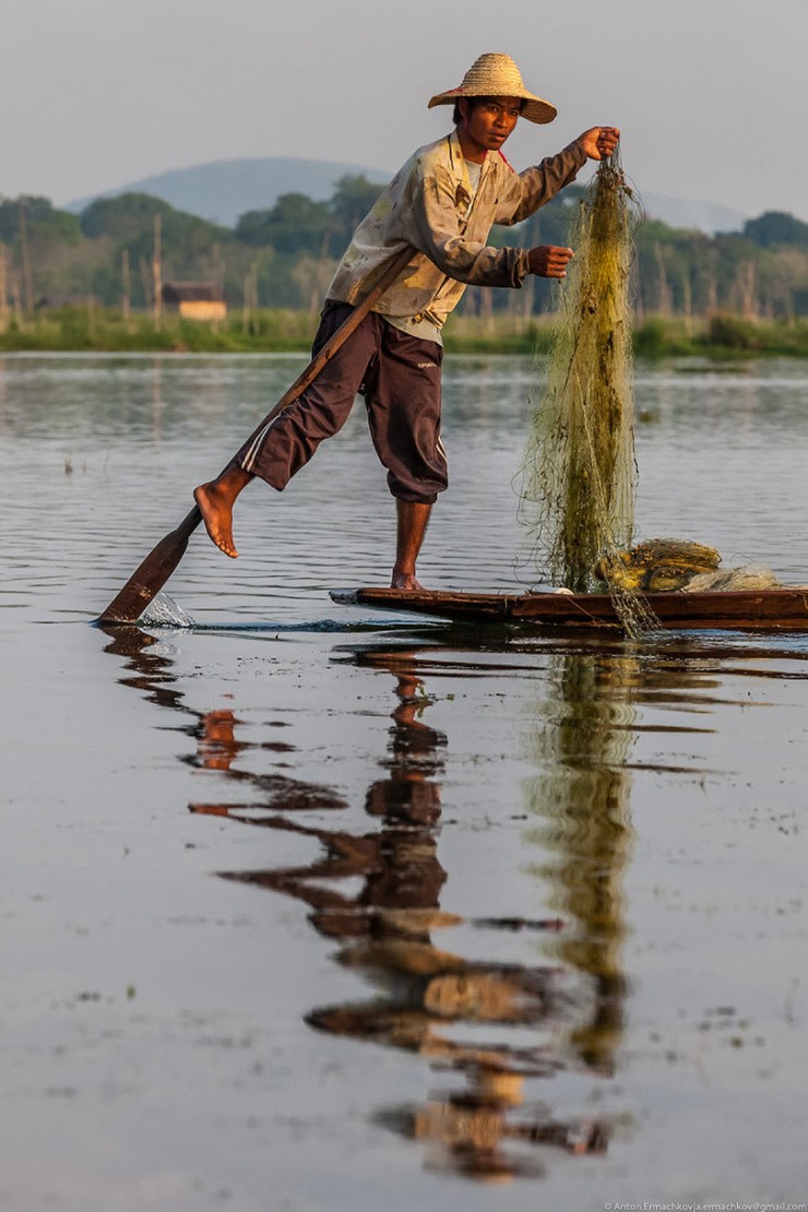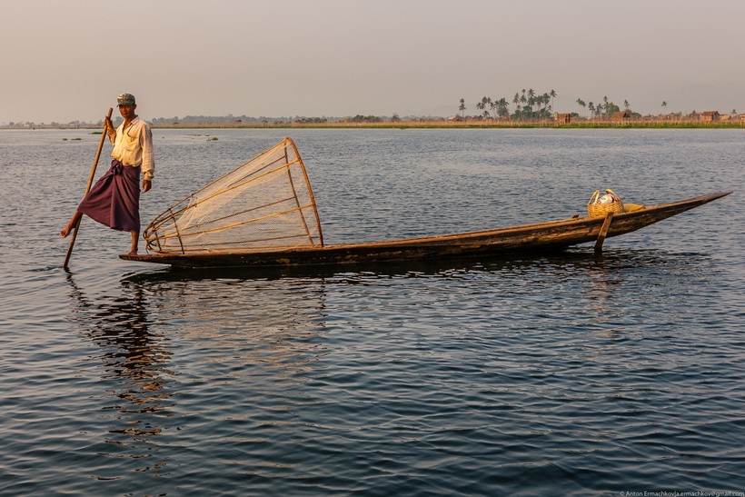 Необыкновенные дома на сваях, рыбаки, гребущие одной ногой, да и само прекрасное озеро Инле, в котором купаются, стирают, моют посуду и ловят рыбу, — все здесь кажется таким удивительным.