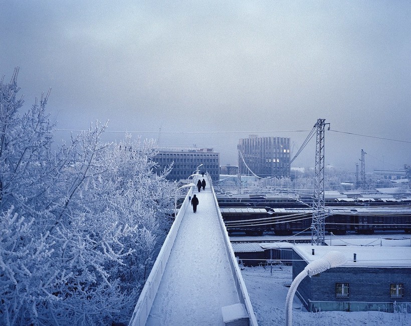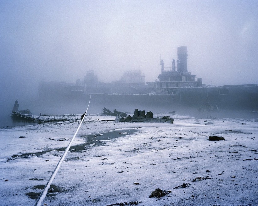 Это уникальный взгляд на пустынную часть мира. Когда температура падала, а люди прятались по домам, фотограф пытался найти общий язык с темнотой и сделать ее своим партнером. С камерой среднего формата он бродил по городам и поселкам вокруг Кольского залива, то и дело заходя куда-нибудь, чтобы согреться.