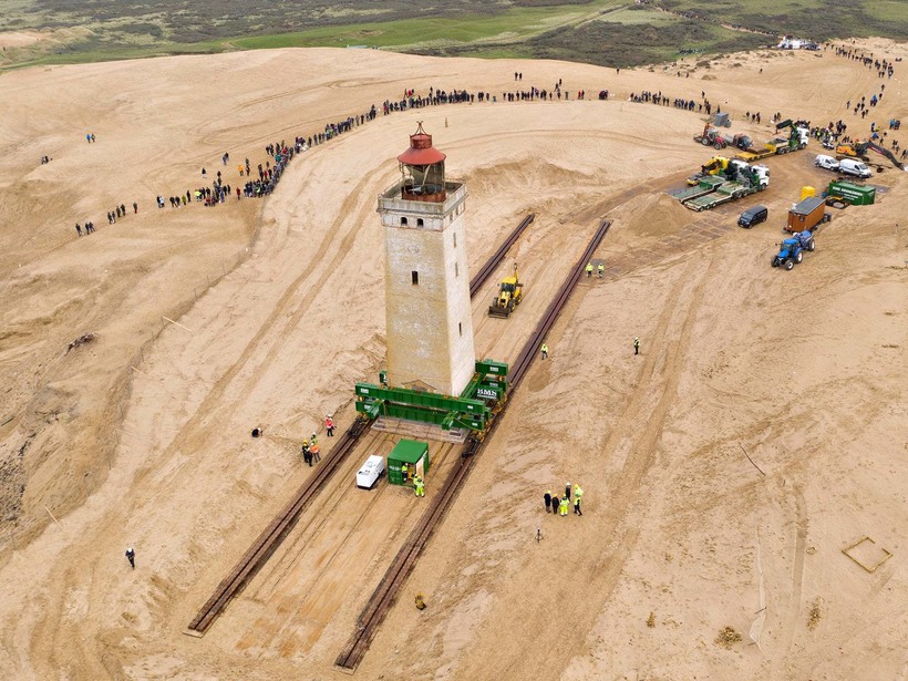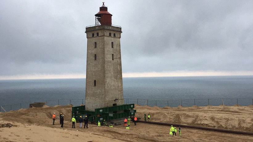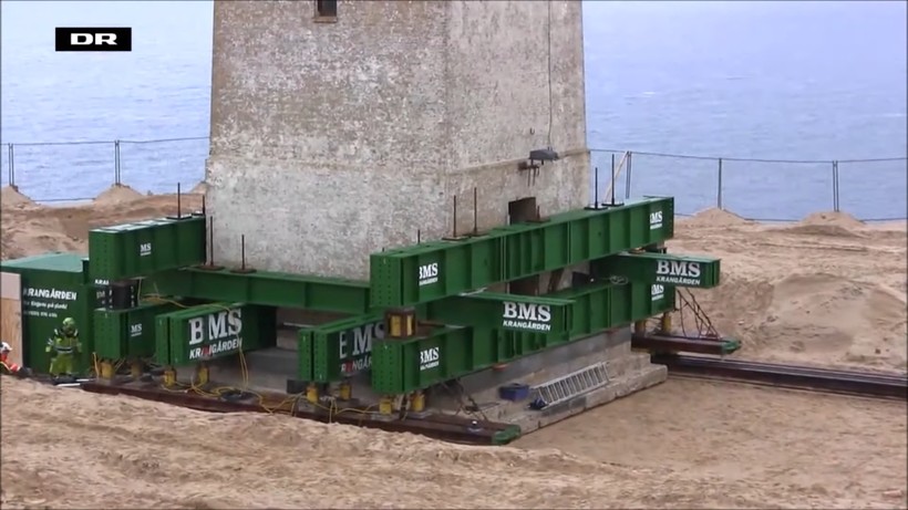 А в этом видео люди с помощью сложной и тяжелой техники спасают маяк от моря и песка. Много часов потребовалось рабочим, чтобы сдвинуть его хотя бы на сто метров: в видео этот момент хорошо показан с помощью ускоренного режима съемки.