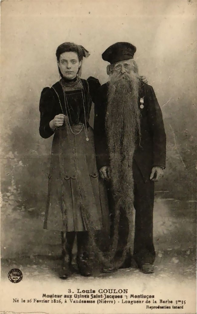 Луи Кулон родился 26 февраля 1826 года в Ванденессе (Ньеве). Он работал чугунным формовщиком на фабрике Фори в Монлюсоне. Вероятно, он имел бы вполне обыкновенную, ничем не примечательную жизнь, если бы не одна удивительная физиологическая особенность. Уже в 12 лет мальчик был вынужден начать бриться и делать это довольно часто. На самом деле щетина отрастала так быстро, что к 14 годам Кулон был обладателем 50-сантиметровой бороды. Со временем Луи перестал так фанатично удалять растительность с лица, и борода невероятной длины стала лишь вопросом времени.