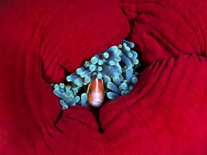 Рыба-клоун, спрятавшаяся в жгучей актинии, была удачно заснята Майклом Галлахером из Великобритании.