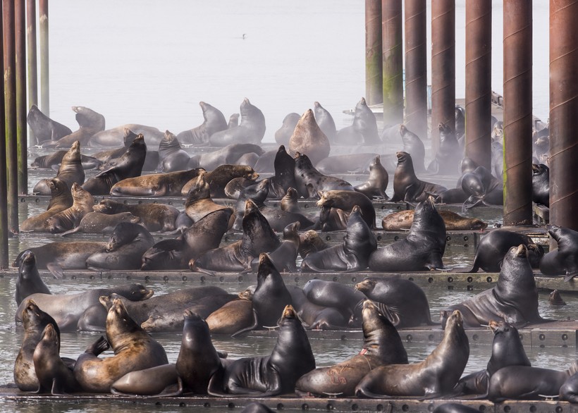 Третье место в этой категории по праву заняли морские львы из Калифорнии. Захват доков этими прекрасными существами запечатлел на камеру американец Роберт Поттс.