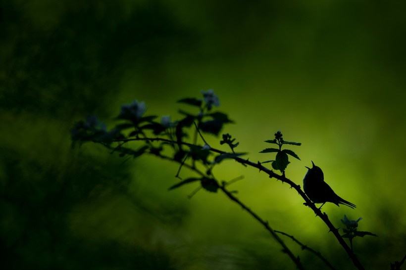 Серебро в этой группе взял снимок певчей птички. Его автор Рэймонд Хеннесси из США восхитил всех силуэтом поющей камышовки.