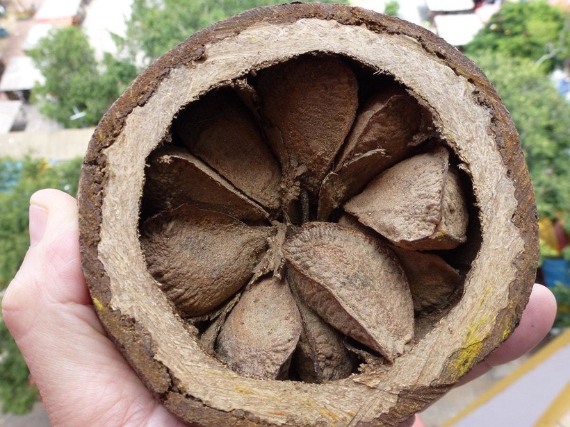 После цветения и завязывания семенной коробочки плоды зреют не менее года, а иногда и до 15 месяцев. Семена, которые нам известны как бразильский орех, находятся внутри плода с очень плотной кожурой.
