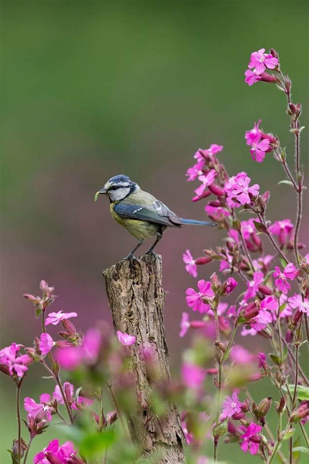 Целая серия фото с необыкновенной птицей лазоревкой была представлена на конкурс любителем природы Paul Sawer. Он не просто запечатлел ее на фоне разных природных красот, но и снял ее за работой и даже во время трапезы.