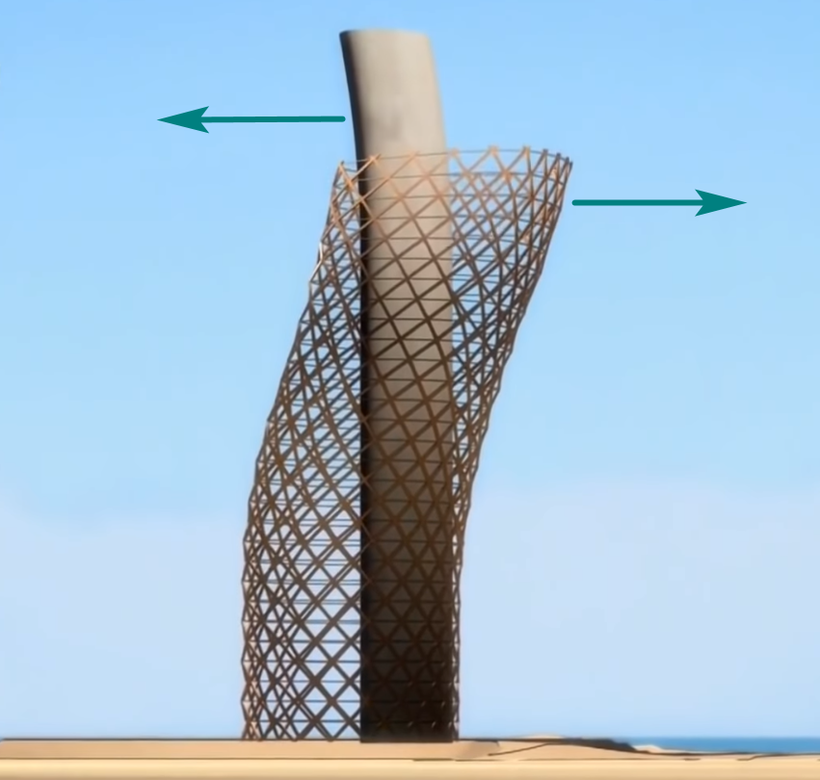 После того как архитекторы представили свой проект и он был утвержден руководством ОЭА, инженеры стали думать, как обеспечить зданию с подобным наклоном конструкции максимальную устойчивость. Угол наклона небоскреба составляет 18º. Это абсолютный рекорд среди всех существующих зданий, построенных человечеством, и он до сих пор не побит. Самые верхние этажи отклоняются от границы фундамента на целых 33 метра! Это огромная разница. При таких параметрах главная центральная часть здания, на которую приходится вся нагрузка, просто не выдержала бы и деформировалась. Поэтому для сооружения Capital Gate требовался особый подход, какое-то уникальное решение. И спустя некоторое время инженерам удалось найти его.