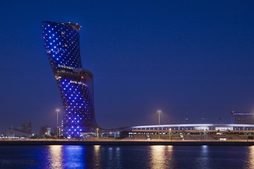 Если наклон Пизанской башни появился в результате строительной оплошности, то Capital Gate в Абу-Даби была изначально задумана с целью поразить публику своими необычными асимметричными формами. Высота этого здания не так уж и велика по сравнению с остальными сооружениями современных Объединенных Арабских Эмиратов, всего 160 метров. Но высота — это не главная изюминка этого сооружения. Перед архитекторами стояла задача возведения небоскреба, который бы стал символом страны и его визитной карточкой. Здание должно было быть не похожим ни на одно другое построенное ранее. По задумке архитекторов необычная наклонная форма должна одновременно символизировать волны Персидского залива и песчаные вихри в Аравийской пустыне. Так возникло здание, бросающее вызов законам тяготения.