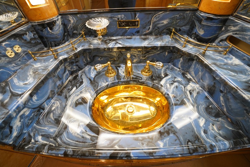 Шикарная ванная комната со всеми удобствами расположена в носовой части самолета.