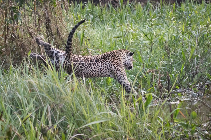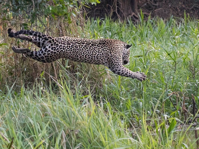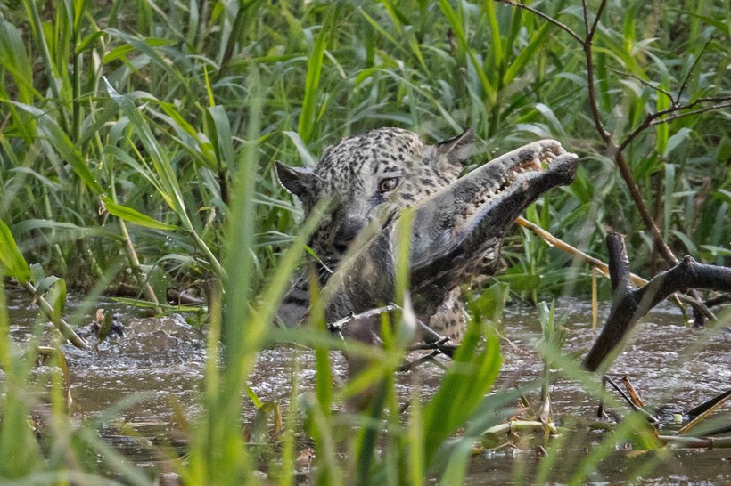 Фотограф дикой природы находился в лодке в тот момент, когда заметил ягуара. Мужчине пришлось провести в ней довольно длительное время, прежде чем зверь решил атаковать свою цель. Целый час ягуар не сводил глаз со своей жертвы и просчитывал удачный момент.