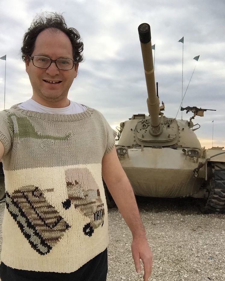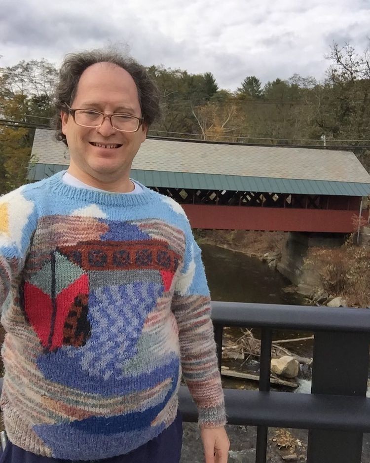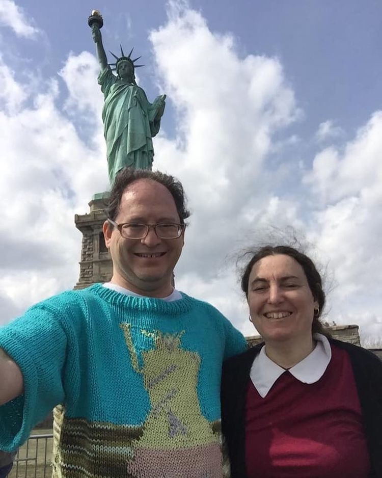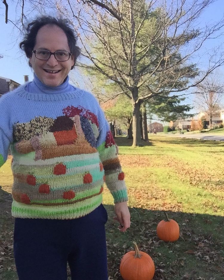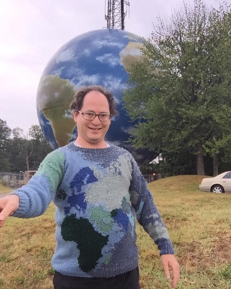 Художник из Балтимора занимается вязанием уже два десятилетия и за это время изготовил почти полторы сотни свитеров. Путешествия и вязание для Сэма идут рука об руку, он нашел поистине оригинальный способ объединить две эти страсти. Поездки вдохновляют его на рукоделие, завершив свой очередной шедевр из ниток, Барски спешит в место, изображенное на нем, чтобы сделать заветный снимок.