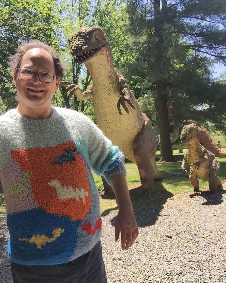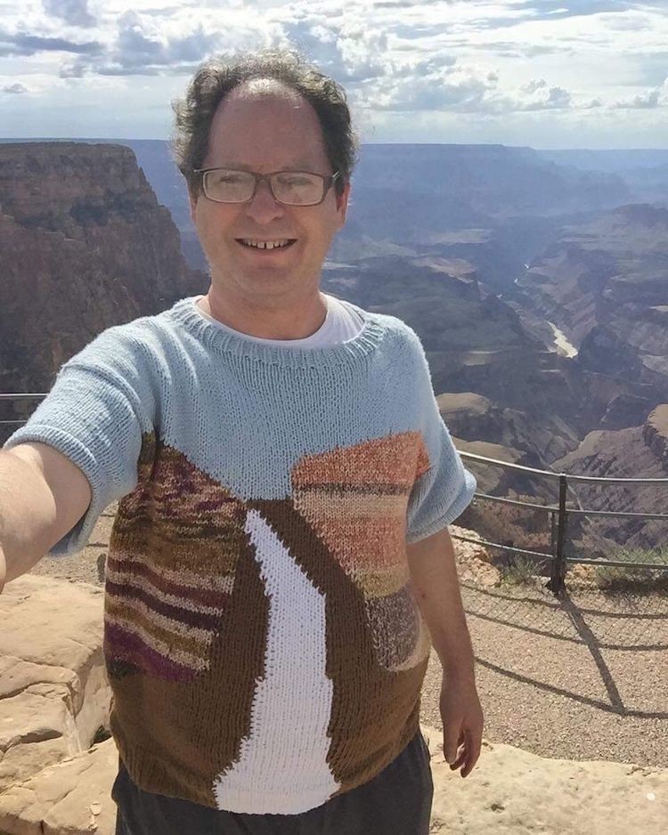 Художник Сэм Барски придумал уникальный способ почтить те места, в которые он приезжает как турист. Вместо того, чтобы просто купить магнит или чашку с изображением своего пункта назначения, он заранее вяжет вручную свитер, изображая пейзаж конкретной местности, которую он намеревается посетить. Затем Барски отправляется туда и позирует перед камерой в специально созданном свитере. Таким образом, его хэнд-мейд одежда являет собой настоящие открытки, впечатляющие своей детализацией.