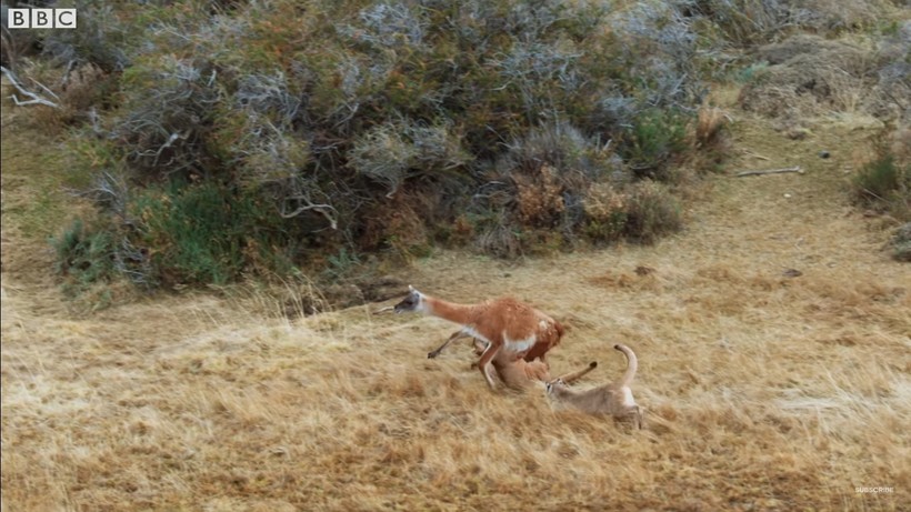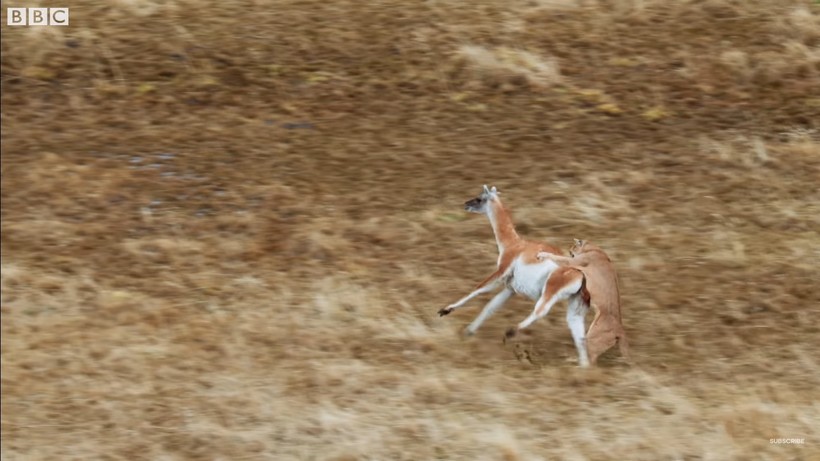 Видео, представленное в сегодняшнем материале — это настоящая остросюжетная короткометражка о том, как несколько пум охотятся на гуанако.