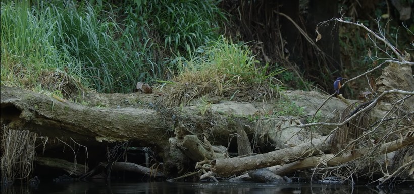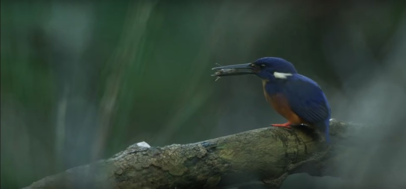 Зимородок любит мелкую рыбу, так как другая просто не влезет в его маленькое тело, а также он не сможет ее быстро схватить. В день птица съедает около десяти мелких рыбок, если рыбалка прошла неудачно, тогда зимородок обращается к земноводным, не брезгует лягушками и мелкими насекомыми. А в этом видео птичке помог утконос, который немного побеспокоил дно водохранилища, и рыба начала выплывать на поверхность. Зимородок воспользовался этим везением, добыча уже у него в клюве.