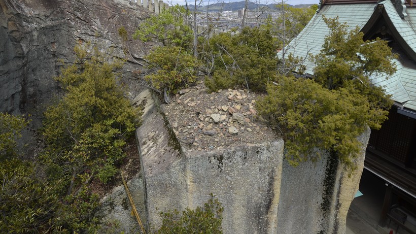 Сбоку имеется выступ в виде пирамиды, а верхняя часть поросла деревьями. Объект считается священным, и японцы приходят сюда для религиозных поклонений. Но вот кто обработал огромную глыбу на склоне горы и для чего ее намеревались использовать, пока не ясно.