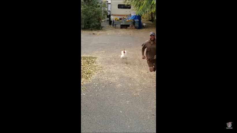В этом видео хозяевам петуха даже необязательно заводить сторожевую собаку, так как с функцией охраны отлично справляется их домашняя птичка, которая напала на пришедшего в дом курьера.
