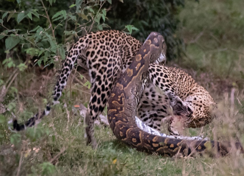 Часто битвы разных животных поражают: казалось бы, зачем леопард задевает питона, который мирно ползет неподалеку. Но у зверей свои территориальные разборки. В видео, представленном в нашем материале сегодня, туристы наблюдают захватывающее сражение между леопардом и питоном.