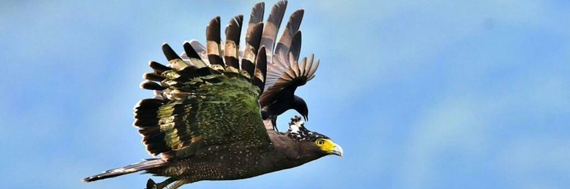 К слову, небольшая птичка из отряда воробьиных часто нападает на тех, кто забрел на ее территорию. Но в этом случае гигантский орел обратился в бегство, даже не пытаясь сопротивляться.