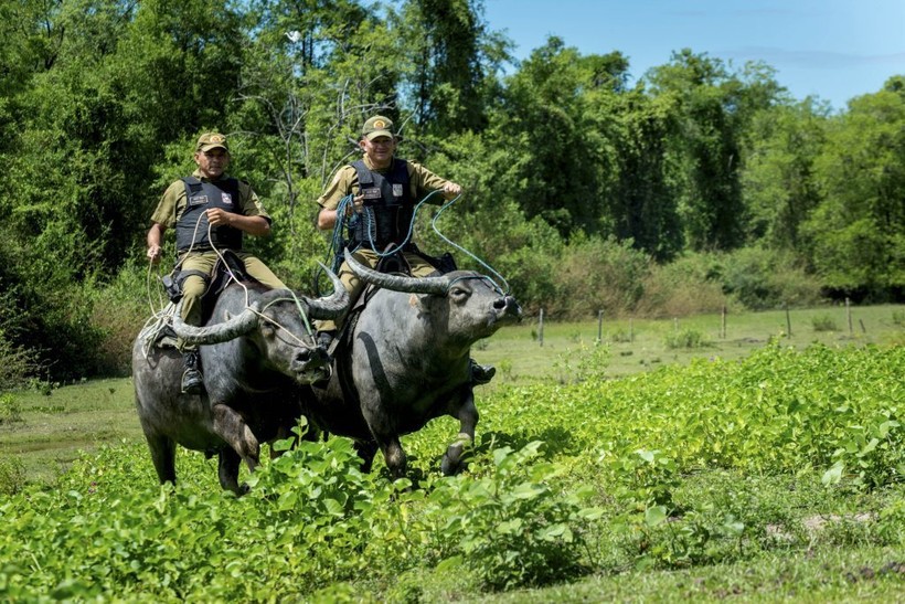 На кадрах стражи порядка с гордостью восседают на гигантских быках. Это азиатские буйволы ― самые крупные быки планеты. Они весят около тонны, а размах рогов доходит до двух метров. Азиатских буйволов завезли в Южную Америку несколько столетий назад. В особенности они популярны на бразильском острове Маражо ― тут насчитывается около 450 тысяч буйволов: их гораздо больше, чем людей. Так что эти быки давно стали частью истории острова.
