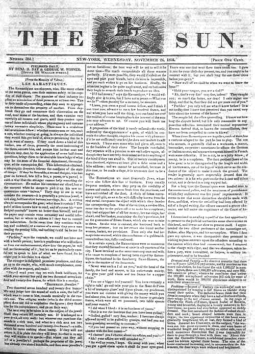 The Sun была основана в 1833 году, финансировалась в основном рекламодателями и преследовала цель получить читательскую аудиторию любой ценой.