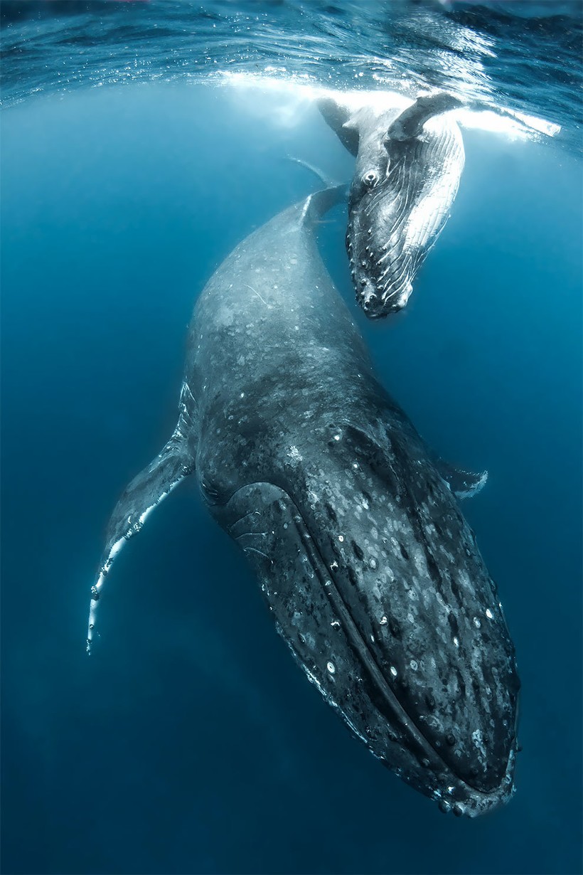 На фотографиях, сделанных Грантом Томасом, вы увидите горбатых китов такими, какими вы не видели их еще никогда. Эти великолепные, умиротворенные гиганты вдруг оказываются на расстоянии вытянутой руки — невероятно близкая и волнительная встреча запечатлена на снимках, сделанных в южных тихоокеанских водах возле берегов королевства Тонга.
