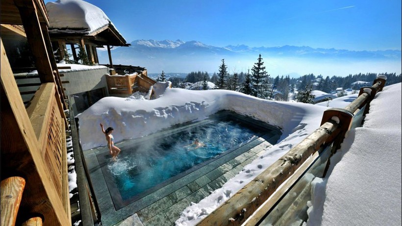 Отель LeCrans Hotel & Spa, несмотря на то, что его теплый зимний бассейн совсем небольших размеров, все равно завоевал мировую популярность. А все благодаря неповторимому пейзажу — живописным швейцарским Альпам и заснеженному лесу. Пребывание здесь вызывает у путешественников только положительные эмоции.