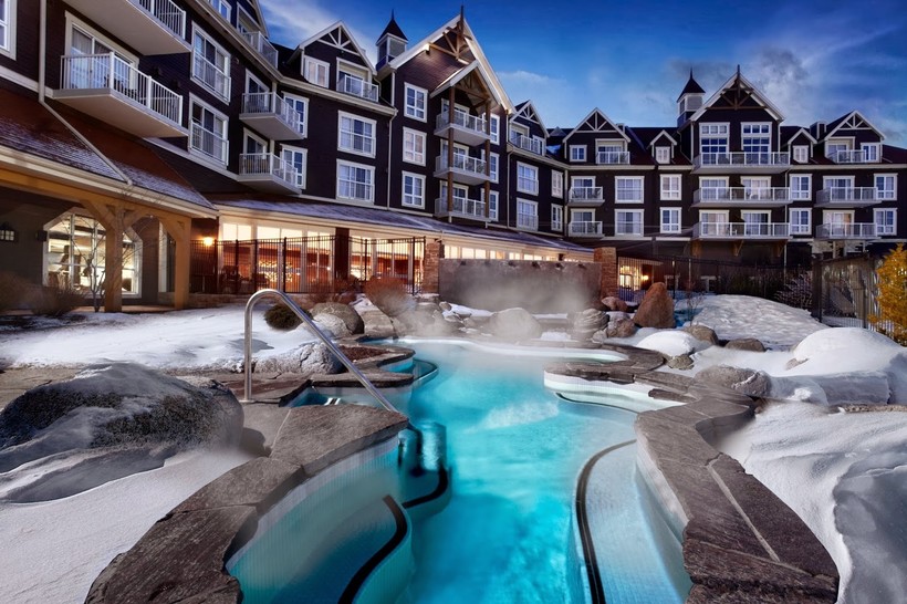 Еще один зимний бассейн, на который непременно следует обратить внимание, находится на самом крупном курорте для любителей горнолыжного спорта The Westin Trillium House в Канаде. Он похож на небольшую теплую реку, текущую между гор.