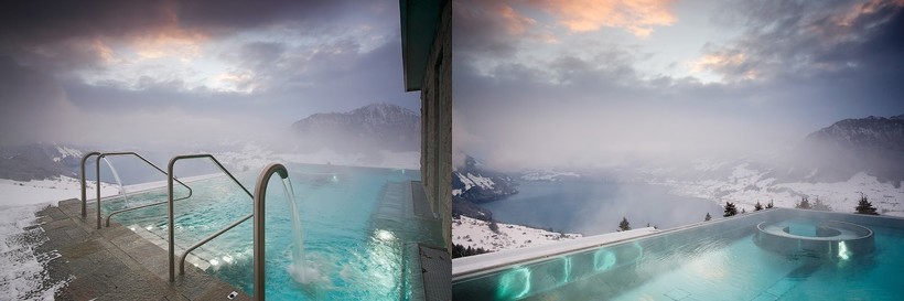 Самый высоко расположенный спа-центр в Европе находится на территории швейцарского отеля Riffelalp. Помимо обычного крытого бассейна, здесь есть еще один на улице. Там можно с комфортом поплавать среди белоснежных гор, ведь температура воды в нем +35ºС.