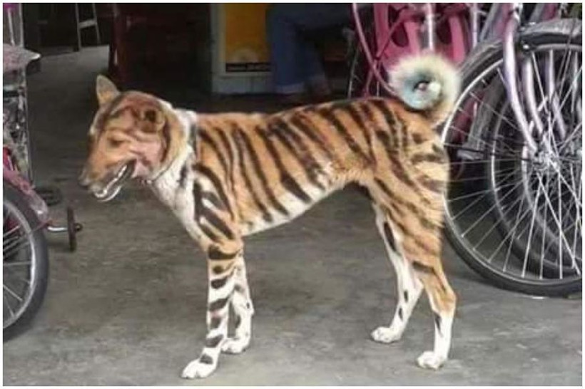 Правда, тигр ненастоящий: это собака, которую Шрикант Говд перекрасил в тигра.