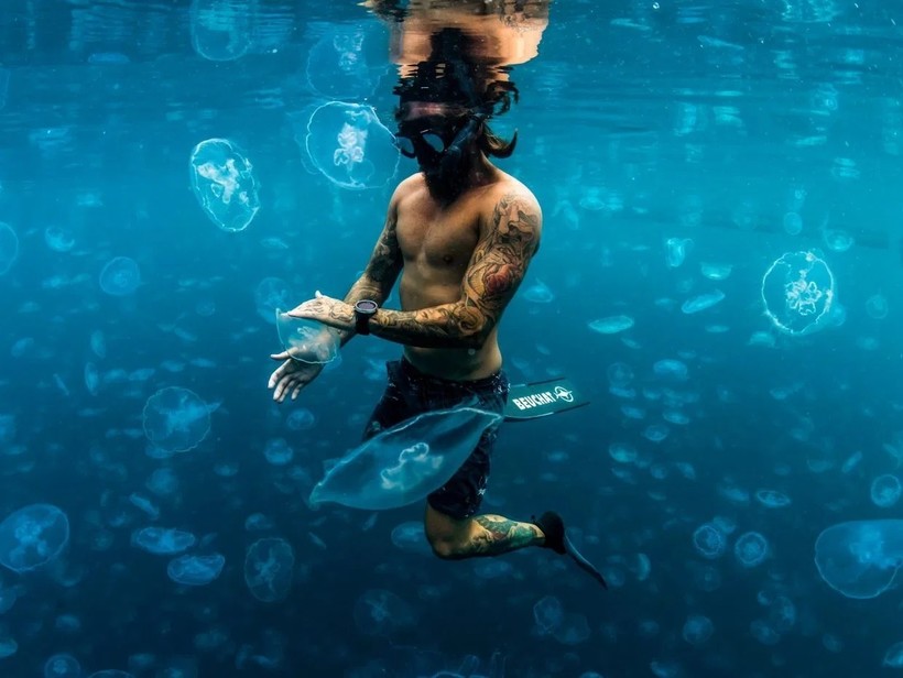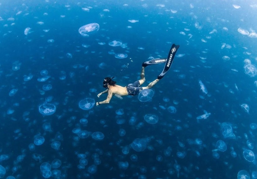 Удивительные кадры удалось снять у индонезийского побережья австралийцу Алексу Кидду . Рядом с архипелагом Раджа-Ампат Алекс с двумя фридайверами встретил огромную стаю медуз и смог запечатлеть их во всей красе. Люди бесстрашно плавали среди нескольких тысяч полупрозрачных существ без костюмов и словно сливались с обитателями океана. Местные жители рассказали, что никогда еще не встречали такой огромной стаи рядом с архипелагом, так что Алексу явно улыбнулась удача. На следующий день после съемок он попытался найти медуз, чтобы запечатлеть их еще раз, однако сделать это так и не удалось.