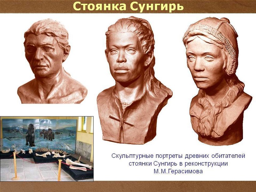 На основании имеющихся останков специалисты из Института этнологии и антропологии РАН и команды Visual Science смогли воссоздать облик обитателей Владимирской земли времен последней ледниковой эпохи. Используя специально разработанную методику, ученые определили черты лица двух мальчиков, погребенных на стоянке Сунгирь, и мужчины.