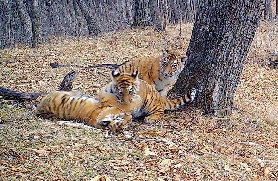 Благодаря новым технологиям, методов наблюдения за животными существенно прибавилось. В видео, представленном в сегодняшнем материале, фотоловушка зафиксировала то, как играют три амурских тигренка.