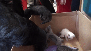 Животному, прославившемуся своим знанием американского языка жестов, показали коробку с котятами и позволили выбрать двоих для себя.