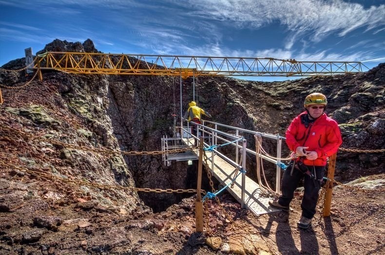 В тридцати километрах от исландской столицы Рейкьявик есть уникальное место ― вулкан Трихнюкайигюр. Это единственный вулкан планеты, в который можно спуститься.