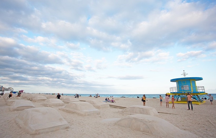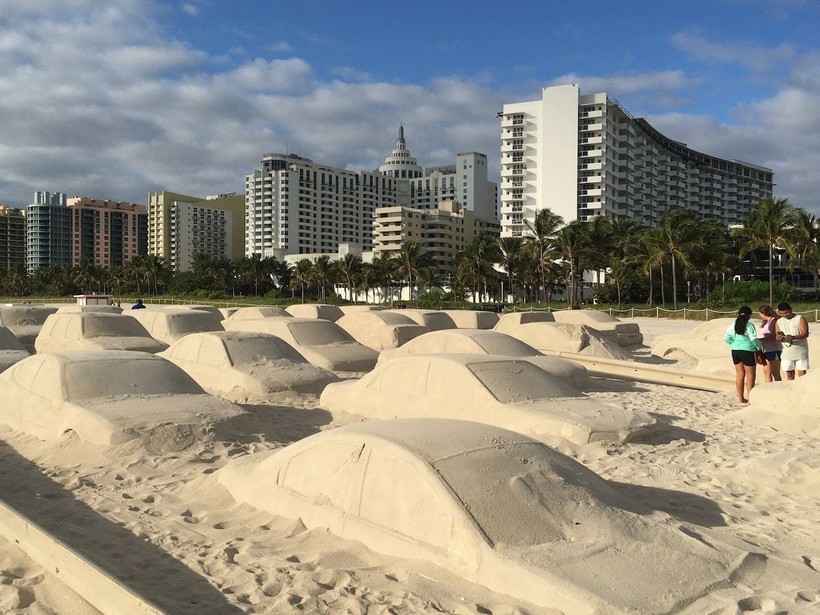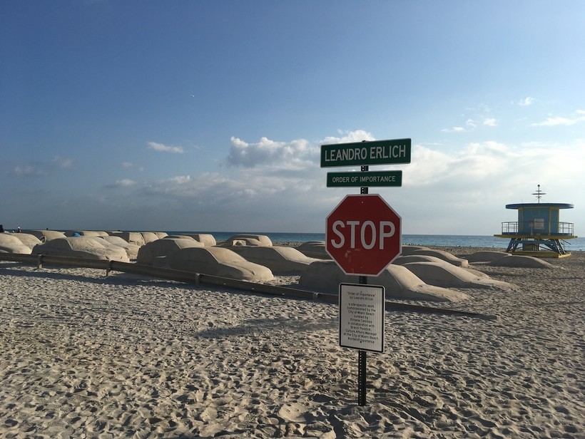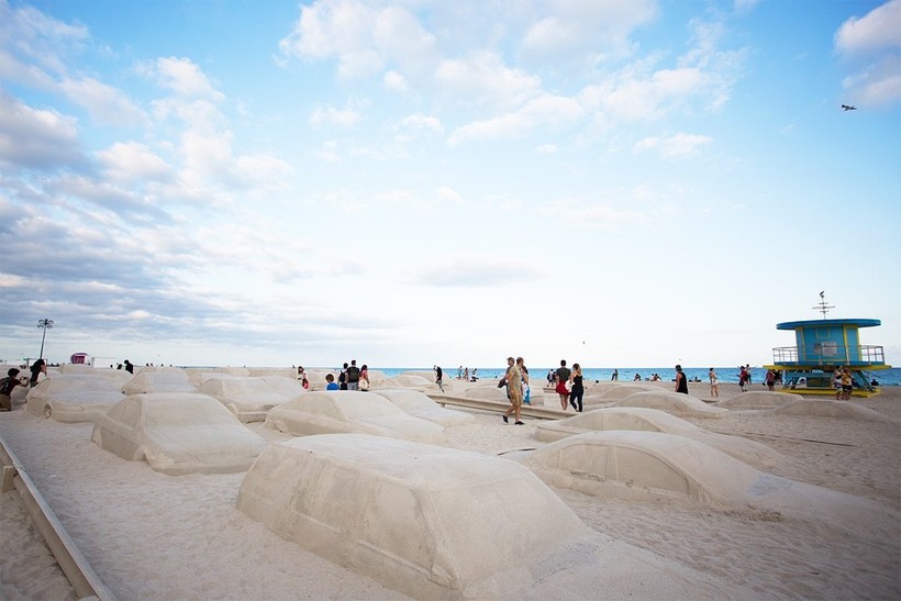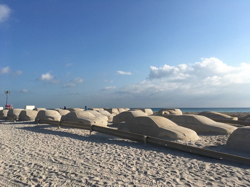 На днях на пляже Майами-Бич образовалась автомобильная пробка и создал ее Леандро Эрлих. Его монументальная инсталляция под названием Order of Importance являет собой 66 песчаных скульптур в натуральную величину — легковые и грузовые автомобили, которые, похоже, были брошены посреди пути. Это крупнейшее творение знаменитого художника на сегодняшний день. Сюрреалистическая пробка из автомобилей должна напомнить всем нам о катастрофических изменениях климата, которые больше нельзя игнорировать.