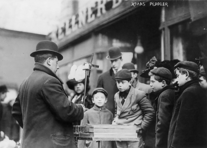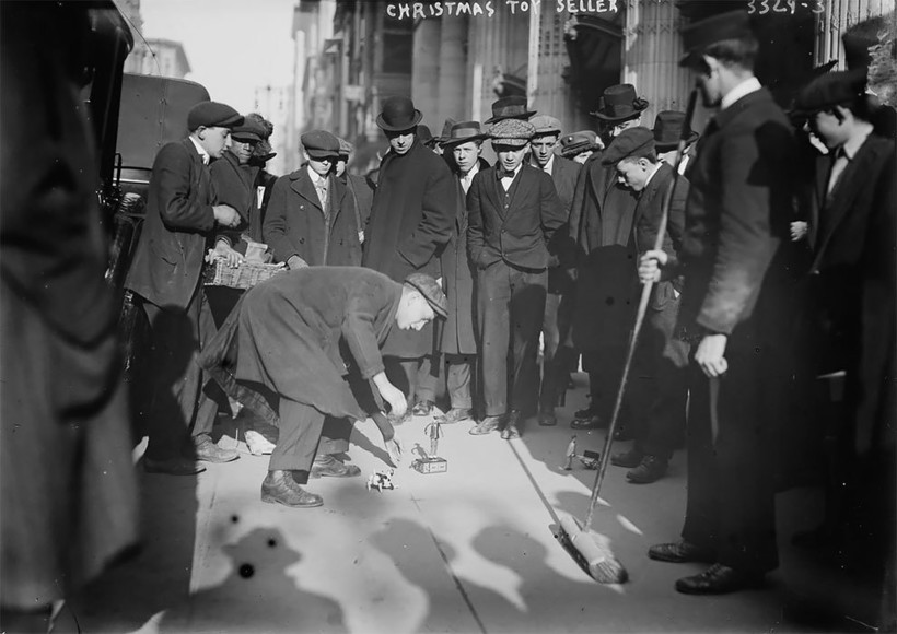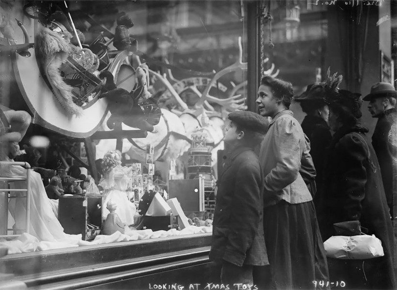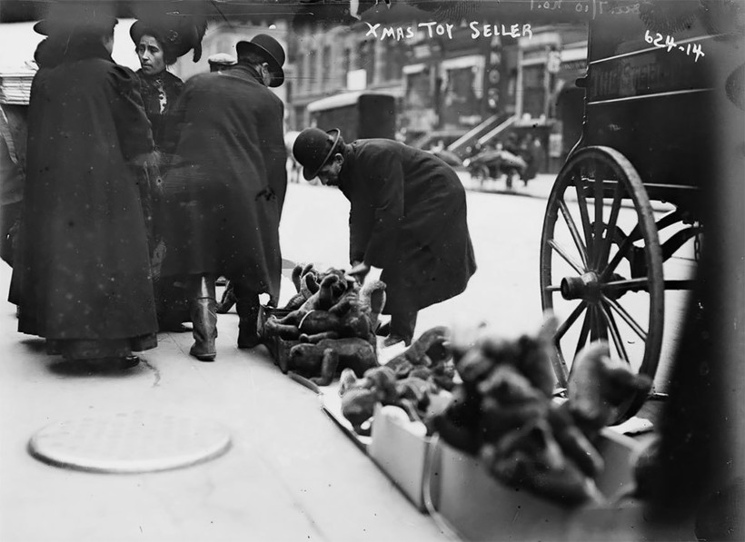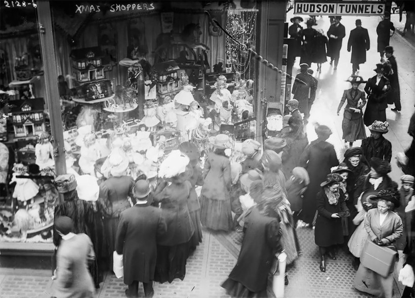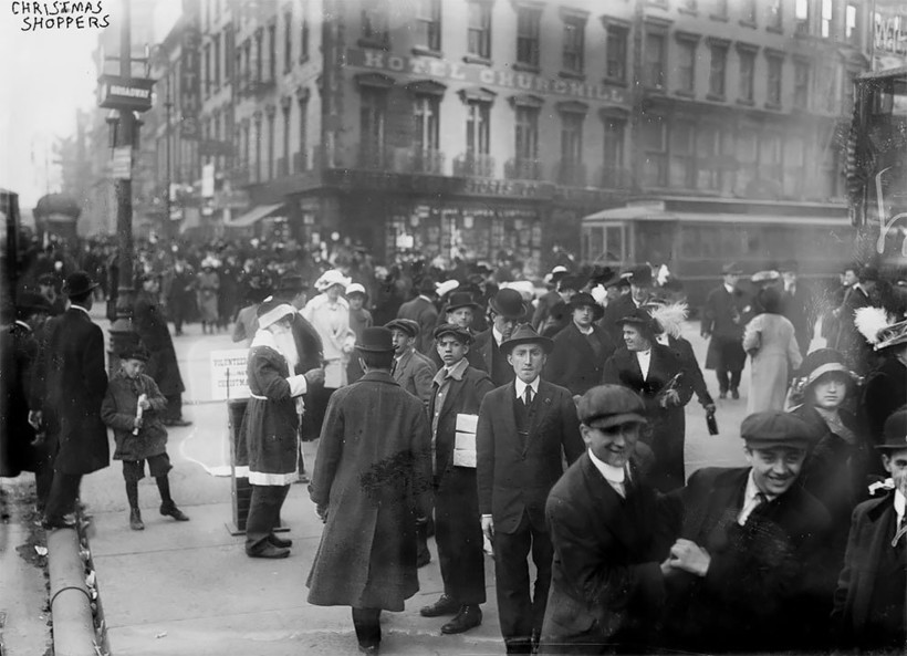 Нью-Йорк всегда славился своим шопингом и особенно возможностью закупиться в рождественский период. Более ста лет назад, в начале 20 века, ситуация с праздничными покупками не сильно отличалась от сегодняшней. В 1910 году была сделана эта потрясающая серия документальных фотографий по заказу одного из самых первых и знаменитых новостных агентств Америки, агентства Джорджа Бэйна.