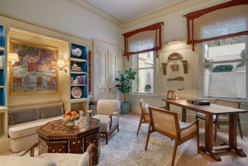 Два величественных трехуровневых особняка вмещают 45 просторных номеров и сьютов, наряду с лаунжами, банкетными залами, помещениями для конференций и галереей. Так же как в облике города сочетаются противоположности — восток и запад, старина и современность, мистичность и приземленность — дизайн интерьера объединяет традиционный местный колорит с современными фирменными элементами стиля Six Senses.
