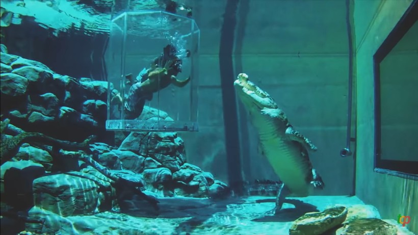 Это аттракцион в Австралии, который будешь помнить очень долго. Человека сажают в прозрачный цилиндр из стекла и на полчаса опускают в резервуар с гребнистыми крокодилами — самыми большими рептилиями на земле.
