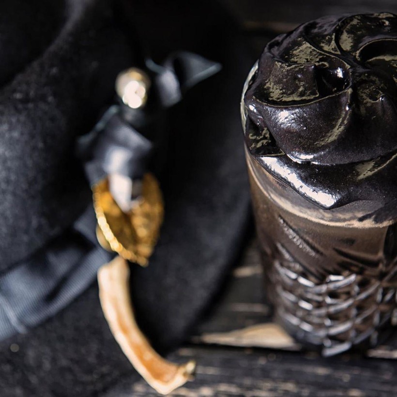 Идея создать черный-черный кофе пришла в голову владельцу кафе Окьону Байону. У него никак не шла из головы мысль, что черный кофе на самом деле совершенно не черный, а коричневый. Тогда он начал свои эксперименты. Сначала Окьон решил подкрасить напиток различными видами активированного угля. Этот ингредиент популярен в кулинарии, им часто подкрашивают продукты. Но кофе получался недостаточно вкусным. Тогда владелец Round K решил добавить в напиток кокосовую золу, которая придала кофе восхитительный ореховый привкус.